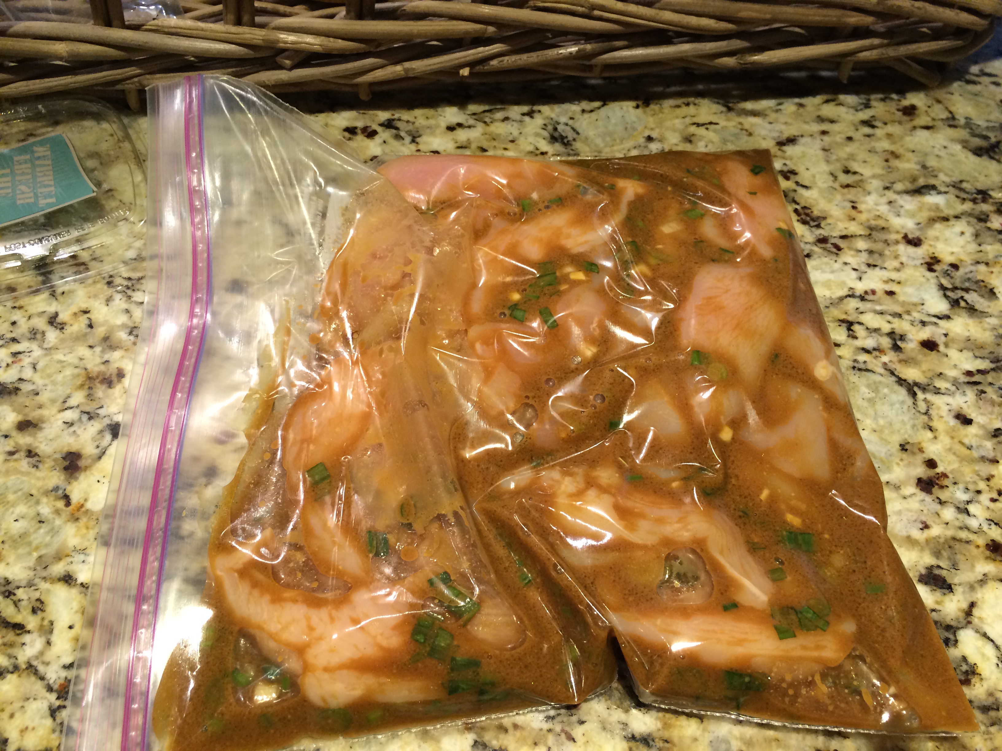 Cut chicken into even pieces, and place in a gallon sized baggie. Pour marinade over the chicken and marinate for 1 hour.