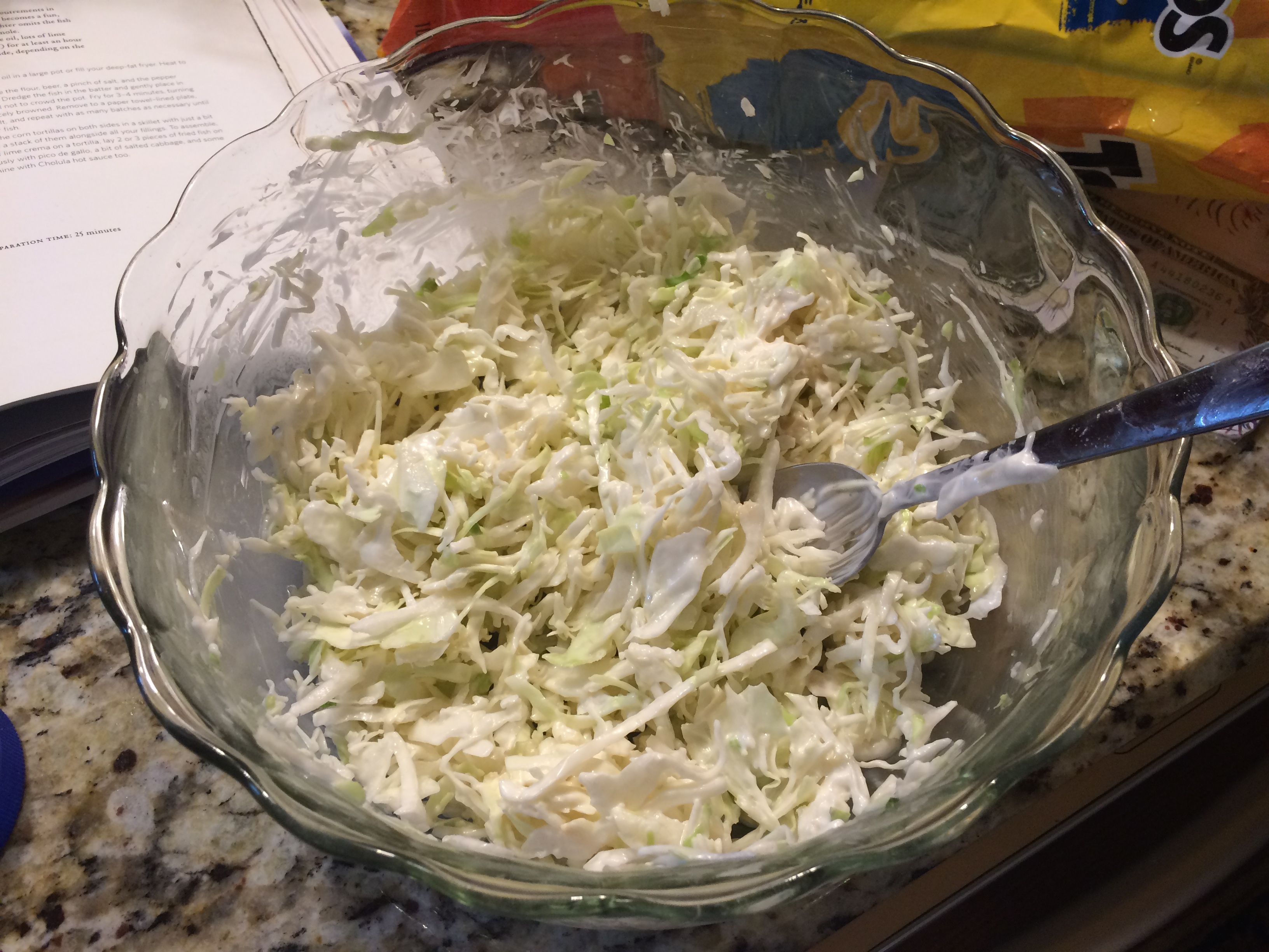 Serve on warm corn tortillas topped with cole slaw, guacamole and salsa.