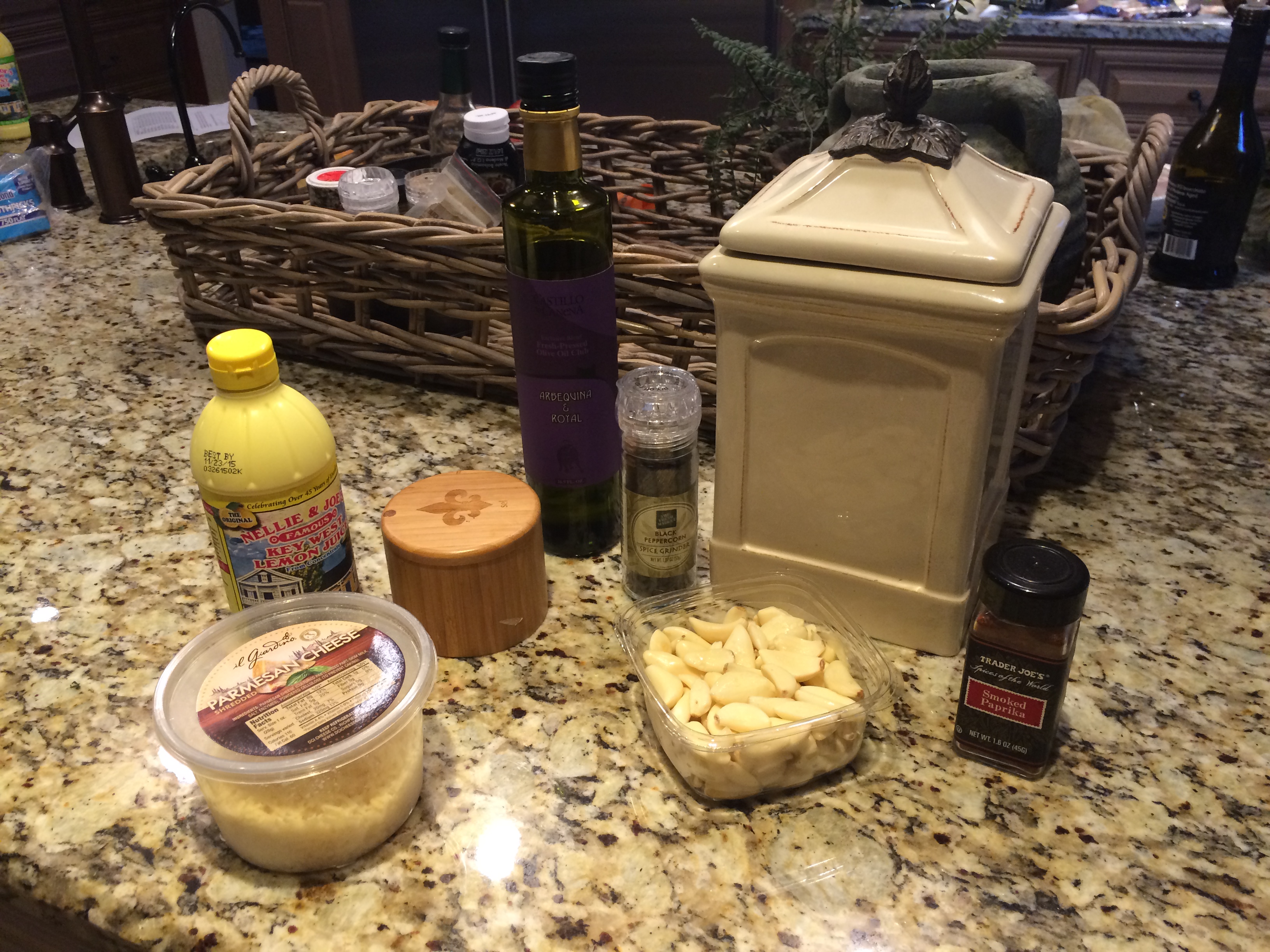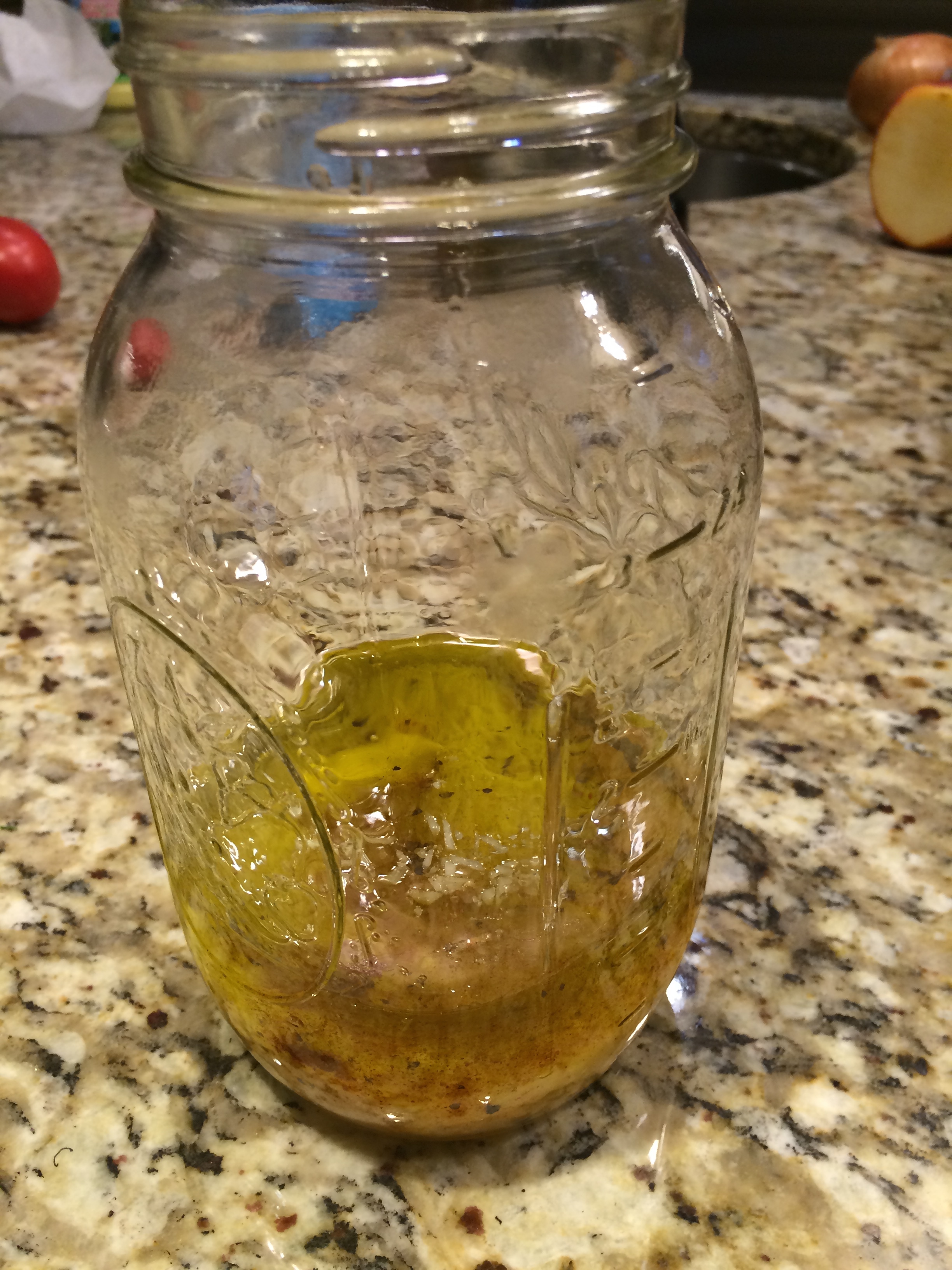 Place the olive oil, Parmesan, salt, pepper to taste, sugar, paprika, lemon juice and garlic into a jar.