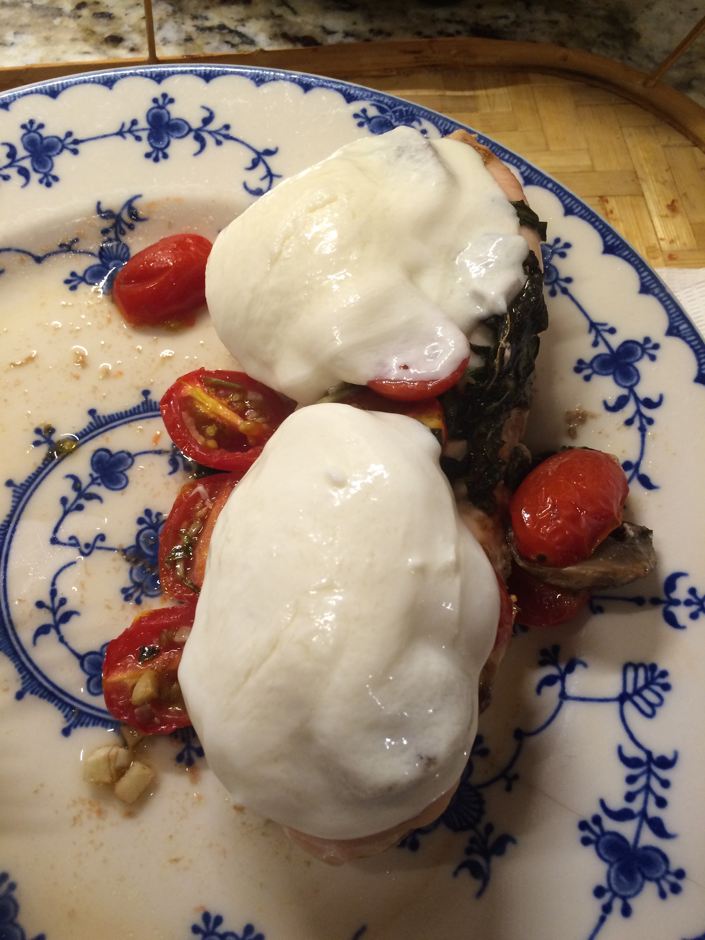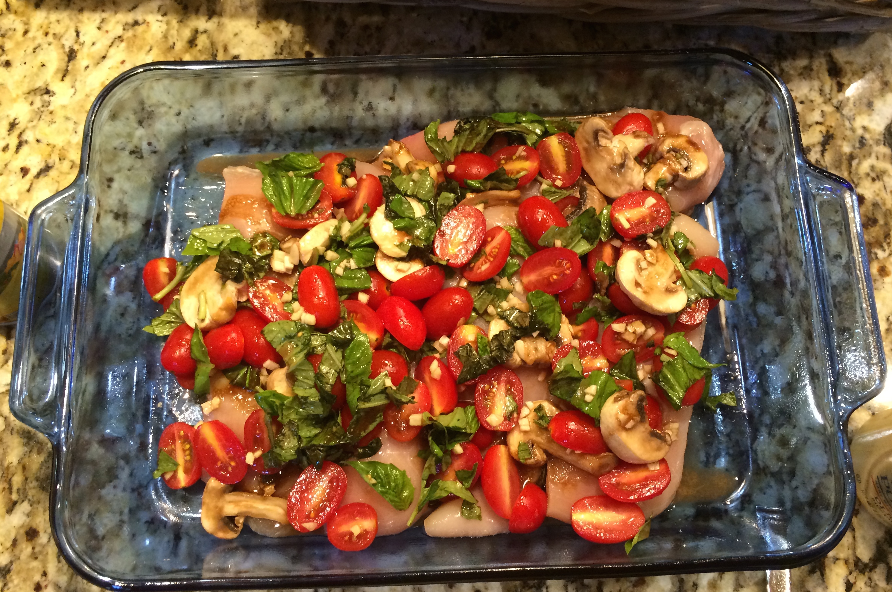 I came up with this recipe using what I happened to have on hand one night. I ALWAYS have caprese salad ingredients it seems, and I had a package of chicken and didn’t have a plan. Idea! Combine the two!