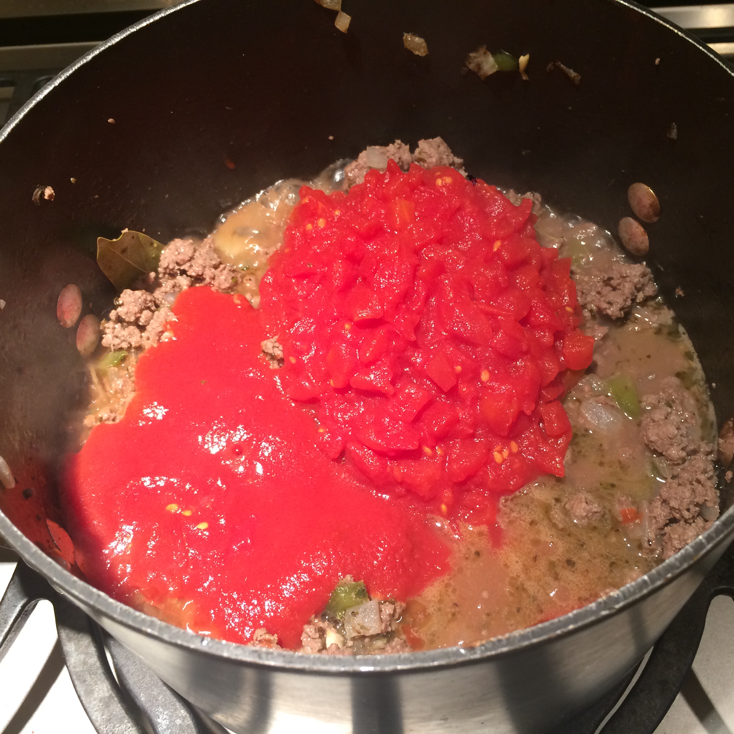 Add the diced tomatoes and tomato sauce and stir until combined.