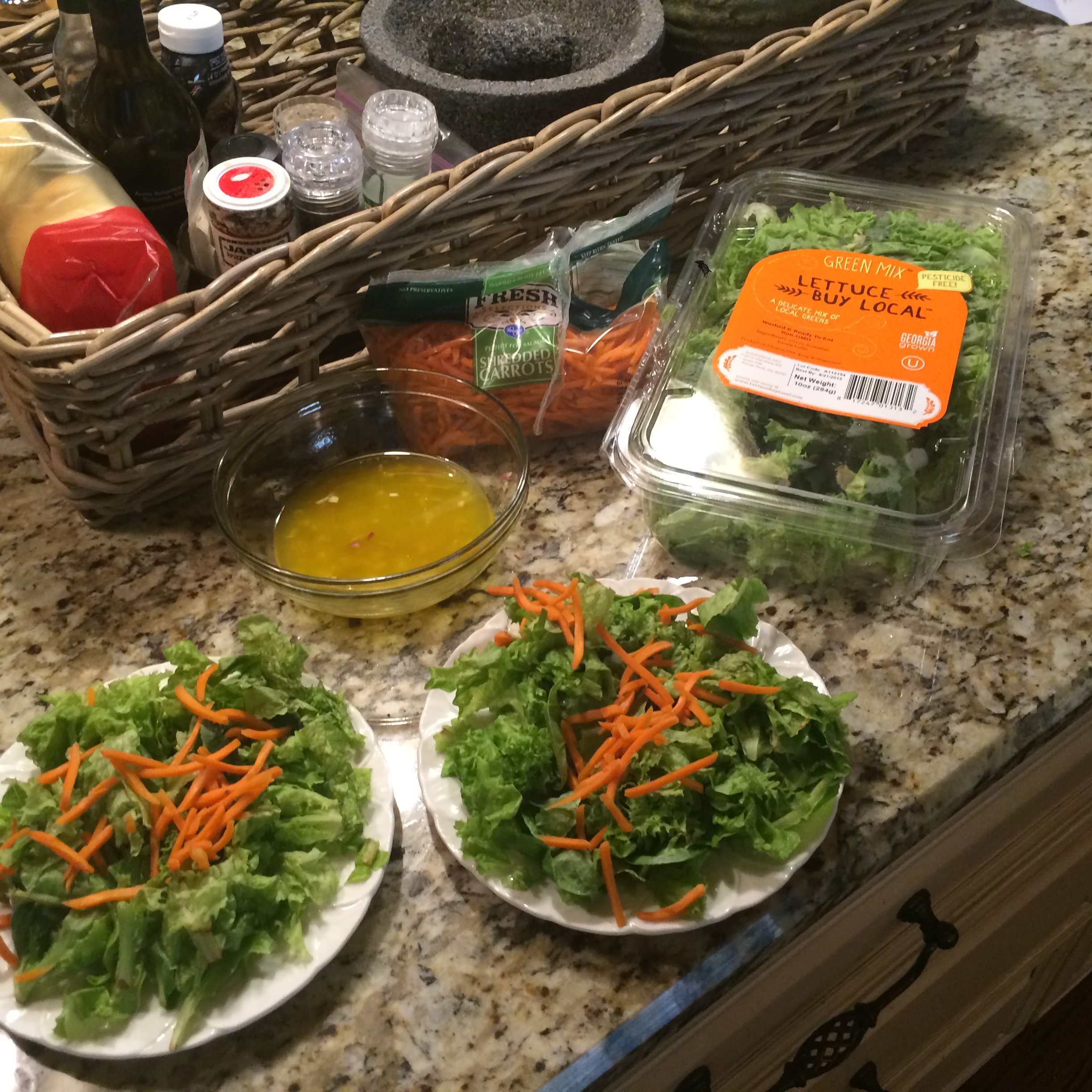 Whisk. Allow to sit for at least 15 minutes. Whisk in the olive oil and then pour over your greens.
