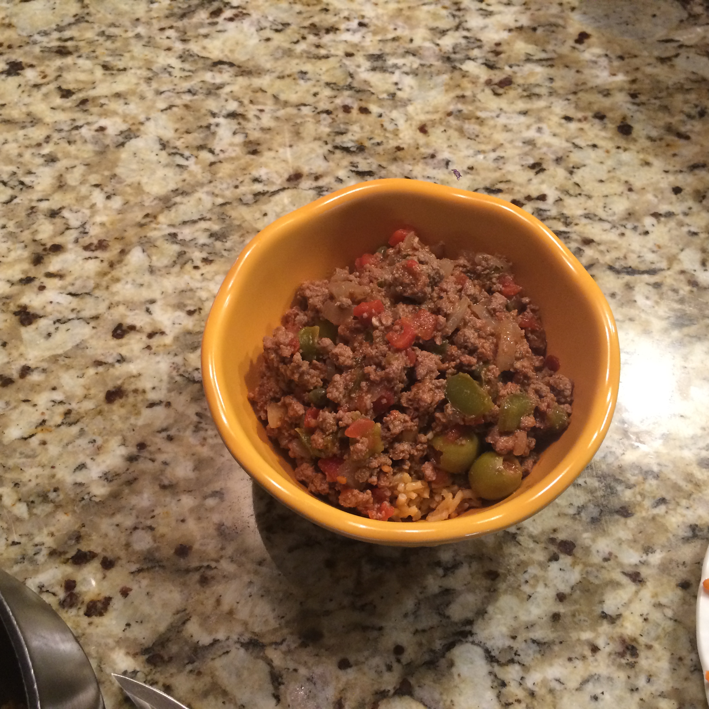 My mother made picadillo regularly when I was growing up in Florida. I absolutely love the combination of flavors! This recipe is easy to make, but be aware that it makes A LOT! I usually freeze half of it to have later, when I’m pressed for time. I found this recipe on mylifeasamrs blog and adapted it. It doesn’t include raisins as my mother’s did, so you can throw those in if you want to add another layer of flavor ~ 1/2 cup should do it. My husband isn’t a fan, so I left them off this time. Serve picadillo over rice with either cuban or french bread. Buen provecho!