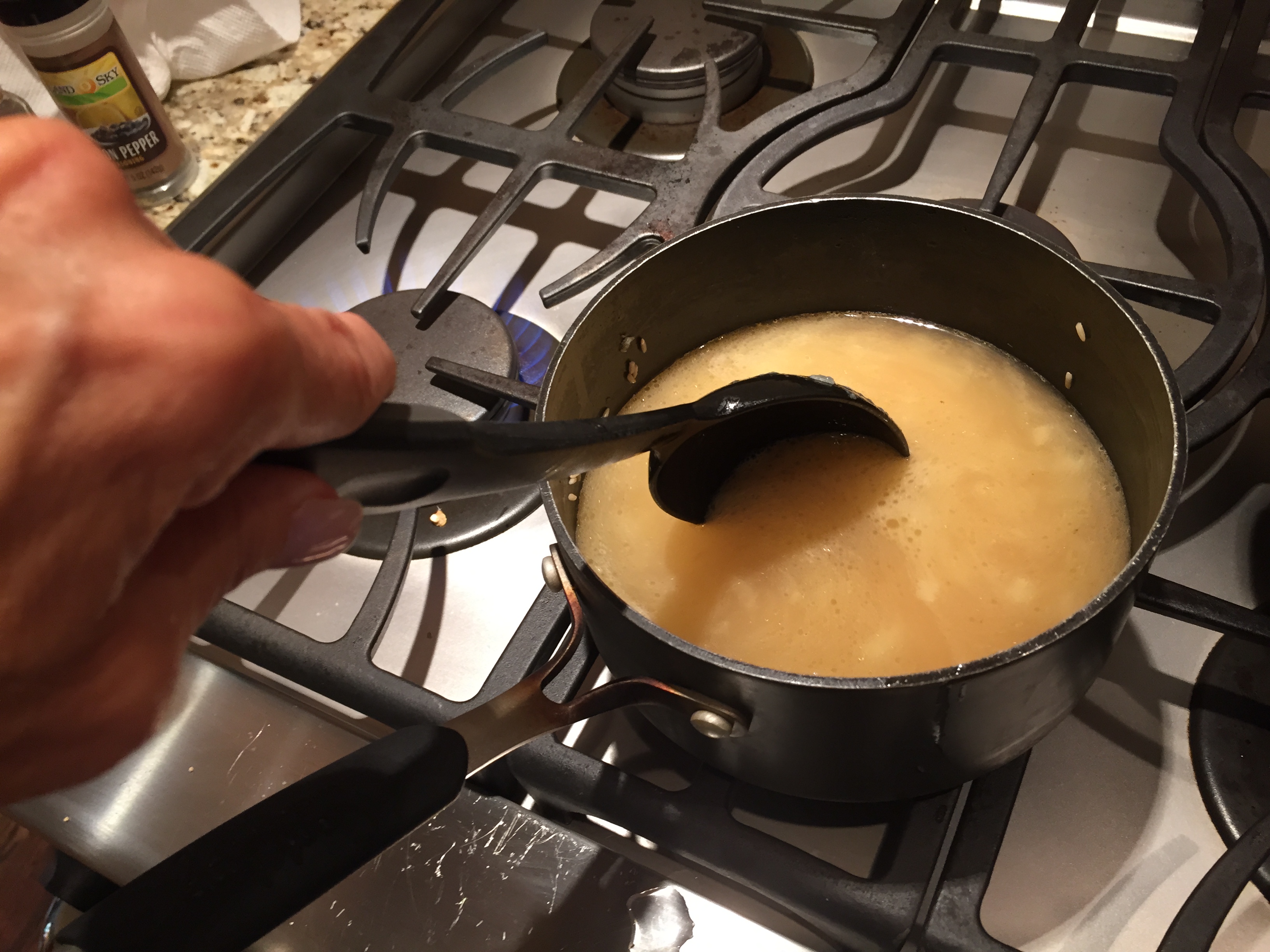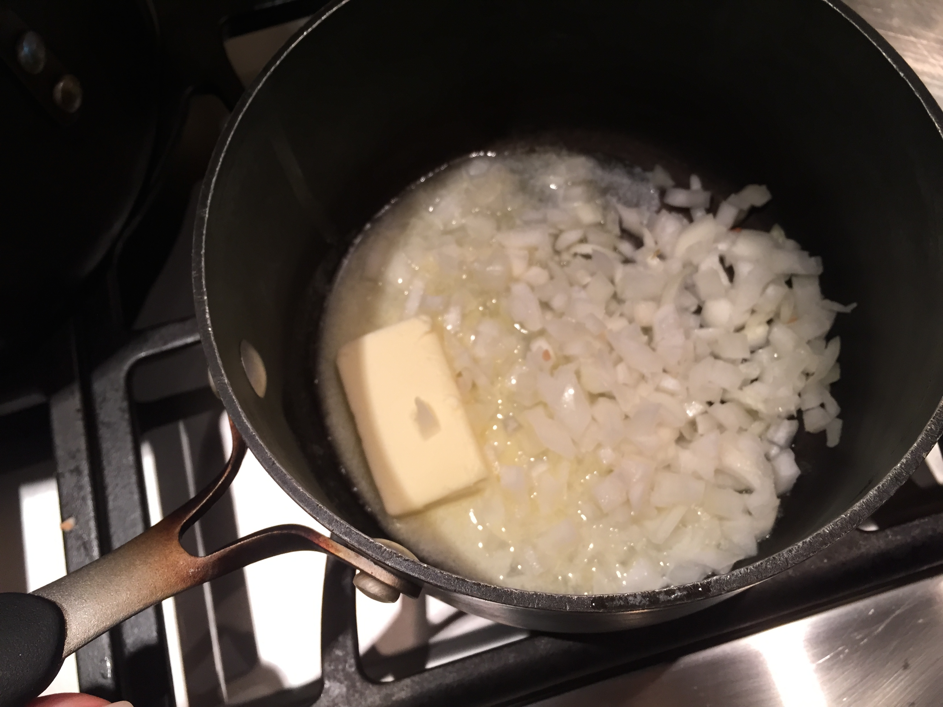 In a medium saucepan over medium heat, melt butter, and sauté onion until translucent.