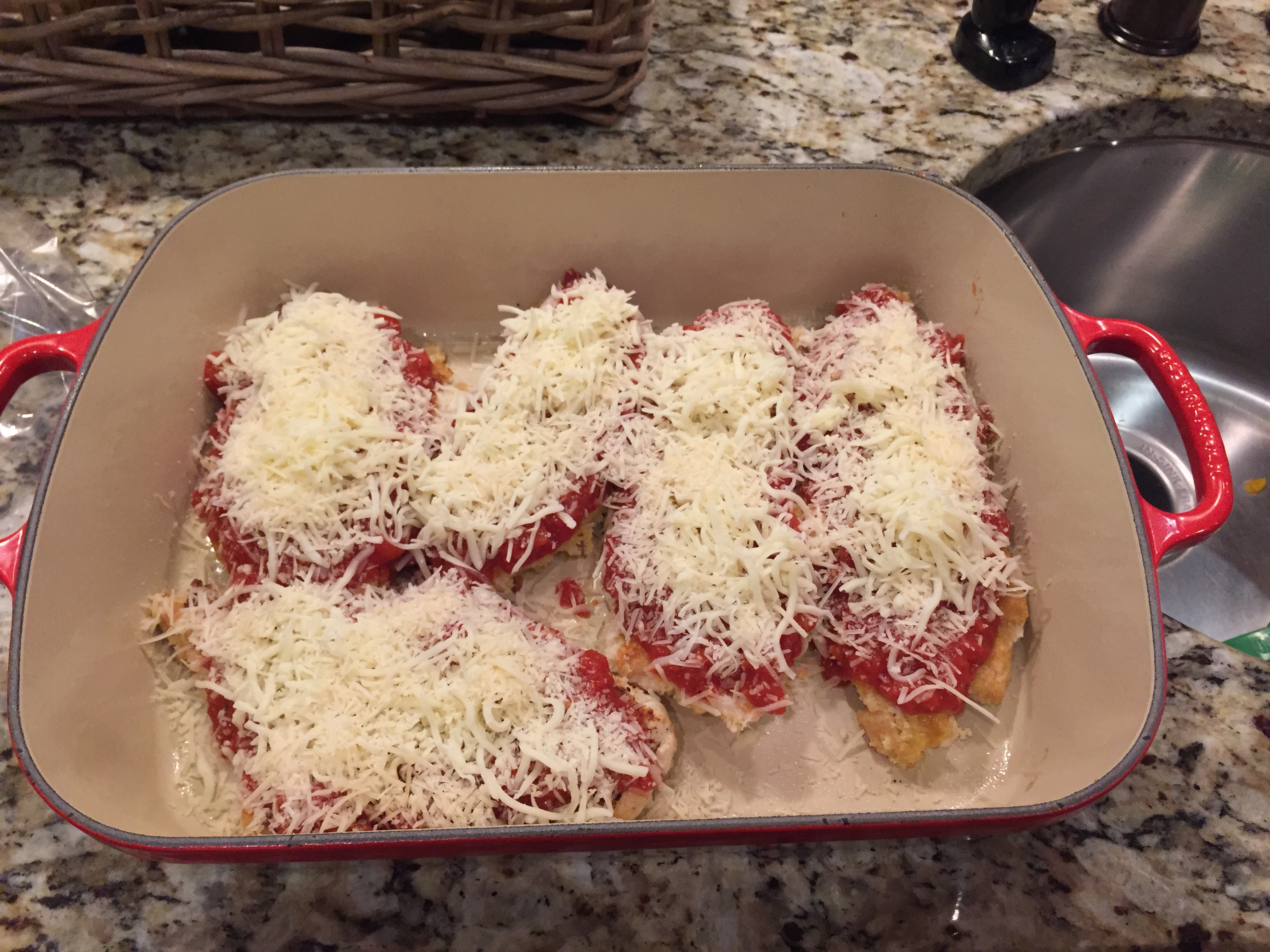 This scrumptious recipe has been my standard chicken parmesan recipe for so long that I don’t know who to give credit to for coming up with it? But, it’s great, it’s a snap to make, and I hope you enjoy it as much as I do!