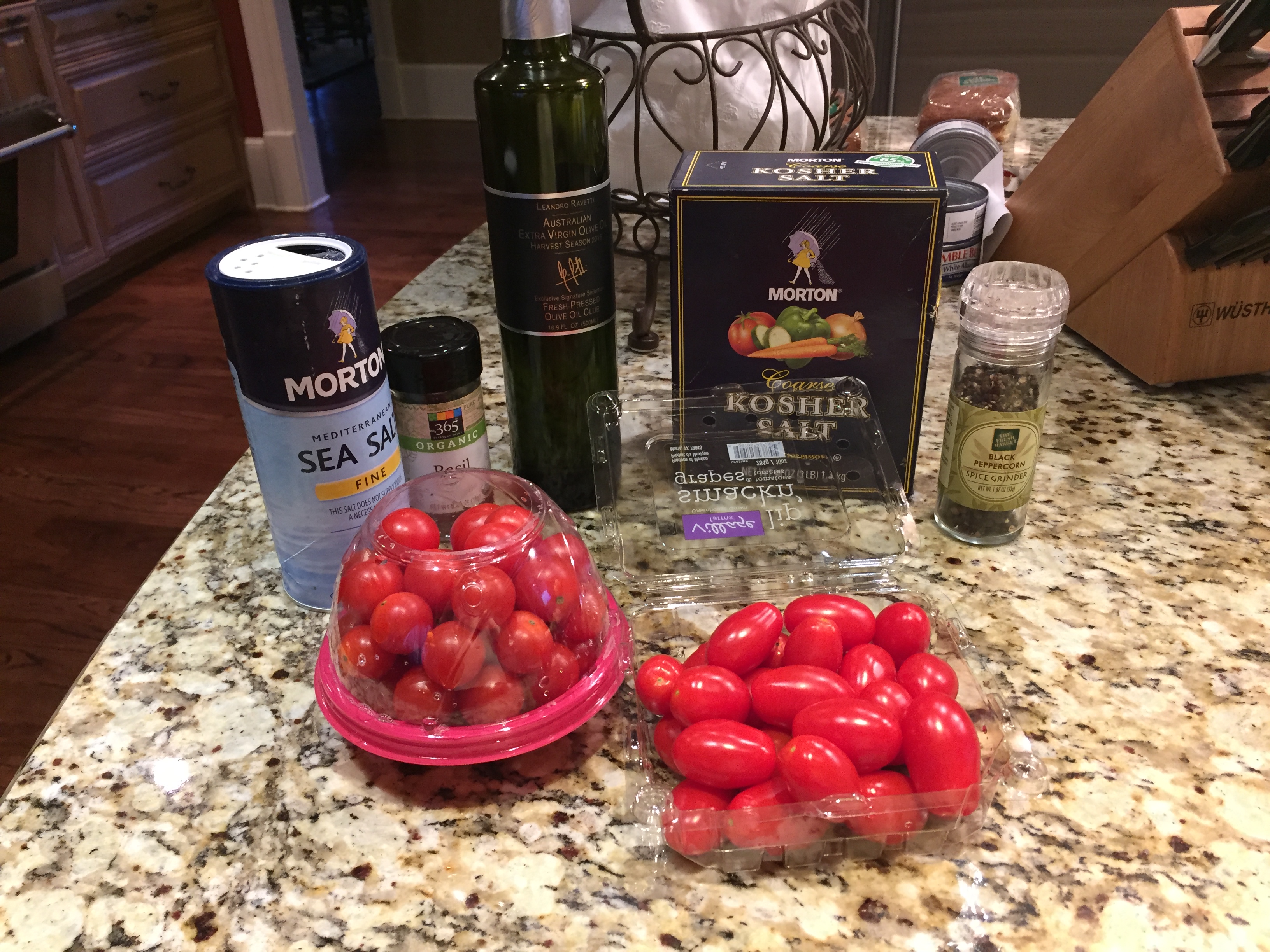 Preheat the oven to 400 degrees F. Toss the tomatoes lightly with olive oil on a sheet pan.