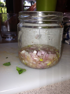 This dressing is one of my favorites!  It dresses up plain butter lettuce nicely and the shallots are what make it stand out in the crowd.  Allow time for the shallots to macerate (fancy word for wait a bit for the flavors to blend).